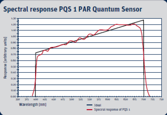 光在植物和作物生長(zhǎng)中發(fā)揮著至關(guān)重要的作用。吸收的光(主要由葉綠素)驅(qū)動(dòng)光合作用過(guò)程,二氧化碳和水轉(zhuǎn)化為葡萄糖和氧氣。使用光的這個(gè)過(guò)程稱為光合有效輻射(PAR)。實(shí)際響應(yīng)效果取決于植物或農(nóng)作物。一個(gè)標(biāo)準(zhǔn)化的PAR在可見光光譜響應(yīng)范圍在400 nm和700 nm,是由McCree(1972)